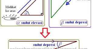 Dalam pembahasan sudut pada pembelajaran matematika kita akan bersahabat dengan istilah sudur elevasi dan sudut depresi. Alat ini terdiri dari berbagai bagian antara lain, kayu berfungsi sebagai penyangga untuk berdirinya klinometer ini, pipa berfungsi sebagai teropong untuk mengetahui puncak suatu objek yang akan dicari ketinggiannya, batu yang berfungsi sebagai pemberat untuk penunjuk arah sudut dan busur. Untuk mempermudah, kau dapat perhatikan ilustrasi gambar di bawah ini. Pada artikel ini kita akan uraikan beberapa rumus tersebut berikut contoh soalnya. Sudut elevasi dan sudut depresi disukai diunduh 60x dilihat 645x.