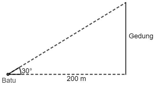 Jika sudut depresi dari puncak gedung terhadap bola adalah 30 ∘, maka tentukan jarak bola ke dasar gedung?